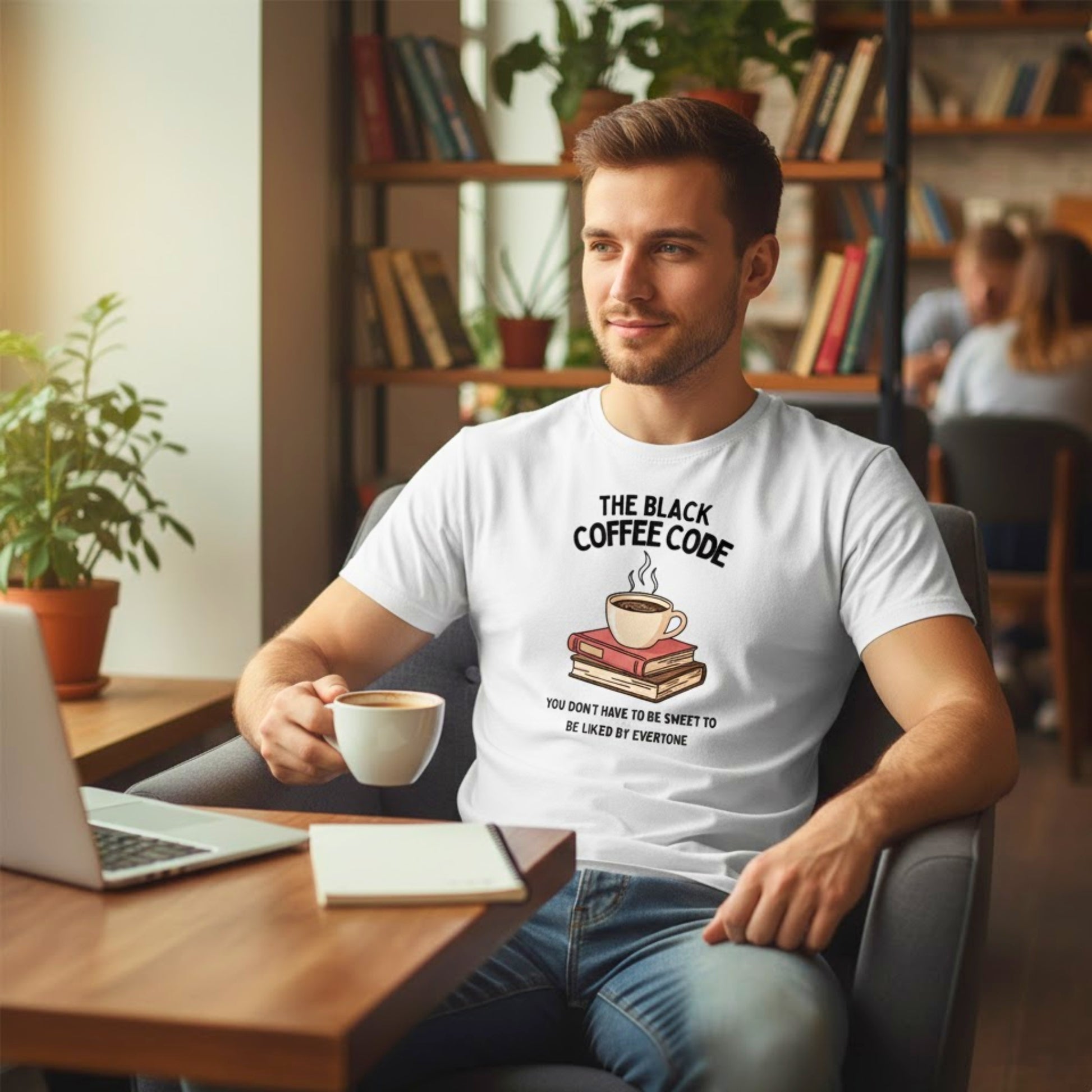 “The Black Coffee Code: You don't have to be sweet to be liked by everyone” perfectly sums up the unapologetic vibe of true black coffee lovers. The stylish coffee-and-books graphic adds a smart aesthetic for intellectuals, creators, and late-night thinkers.